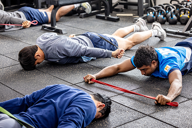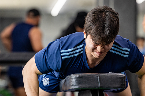 스쿼트와 벤치프레스, 그리고 다양한 체력 지표를 통해 개인의 컨디션을 점검한다. 100kg이 넘는 무게를 버텨내느라 얼굴이 일그러져도 선수들은 멈추지 않는다. 묵묵히 들어올리고 다시 내려놓기를 반복한다. 훈련을 기록하는 수치 중에서 아래로 떨어지는 것은 오직 땀방울뿐이다.
